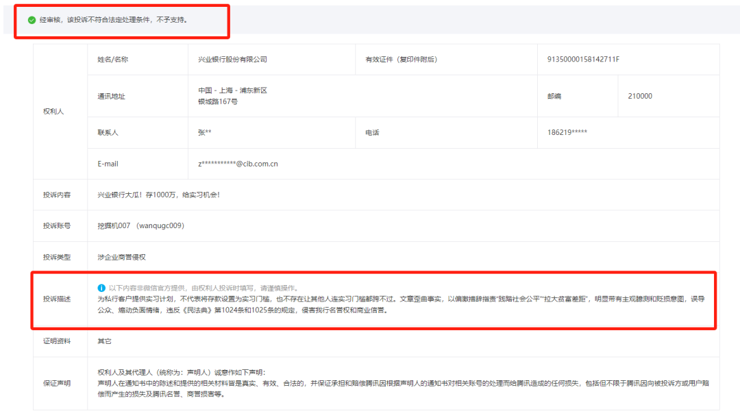 兴业银行之前可没有什么歉意,而是不断为自己的行为辩驳!不过,平台可没有被它欺骗,最后都是驳回了兴业银行的投诉!